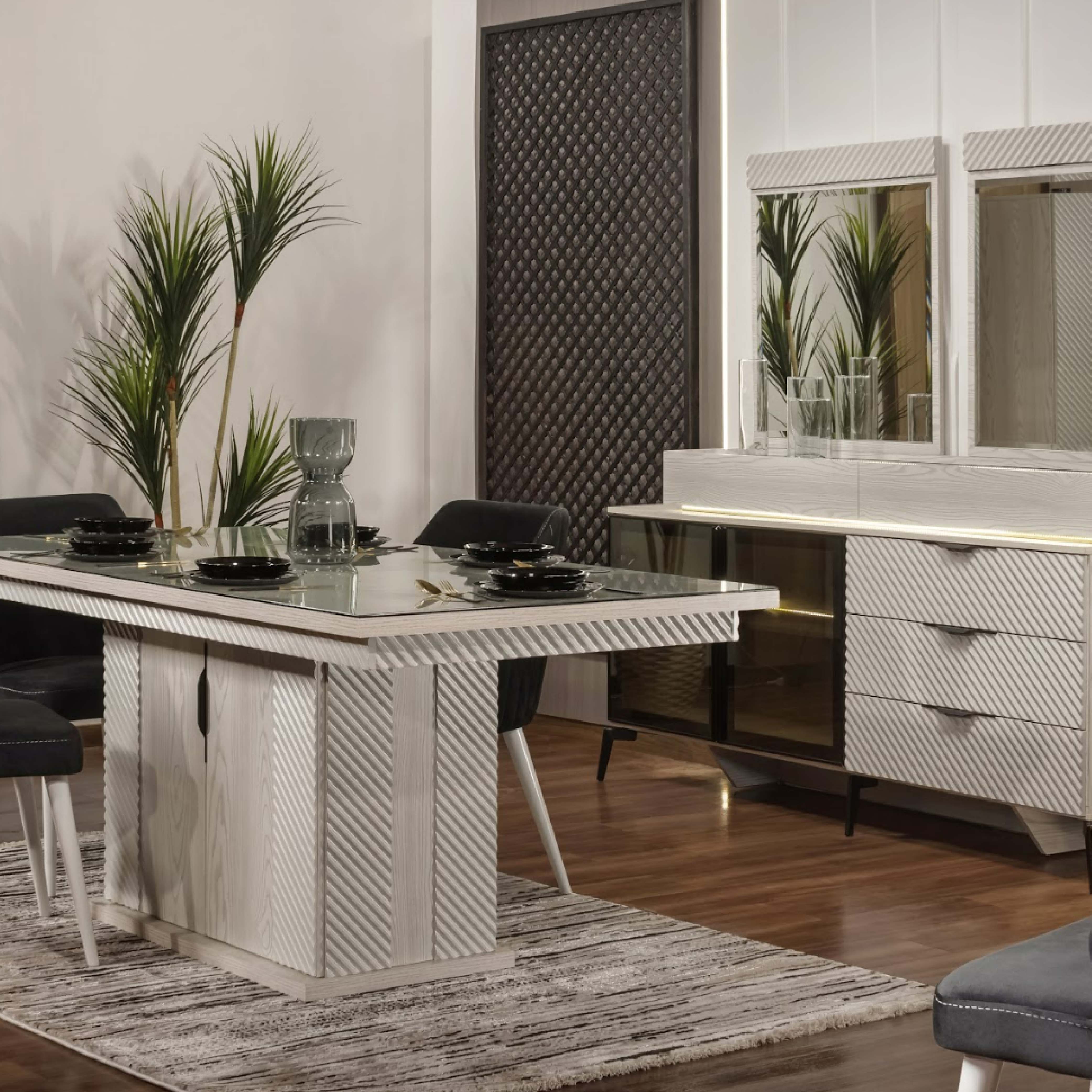 سفرة مكونة من ترابيزة + 6 كراسي + نيش + بوفيه