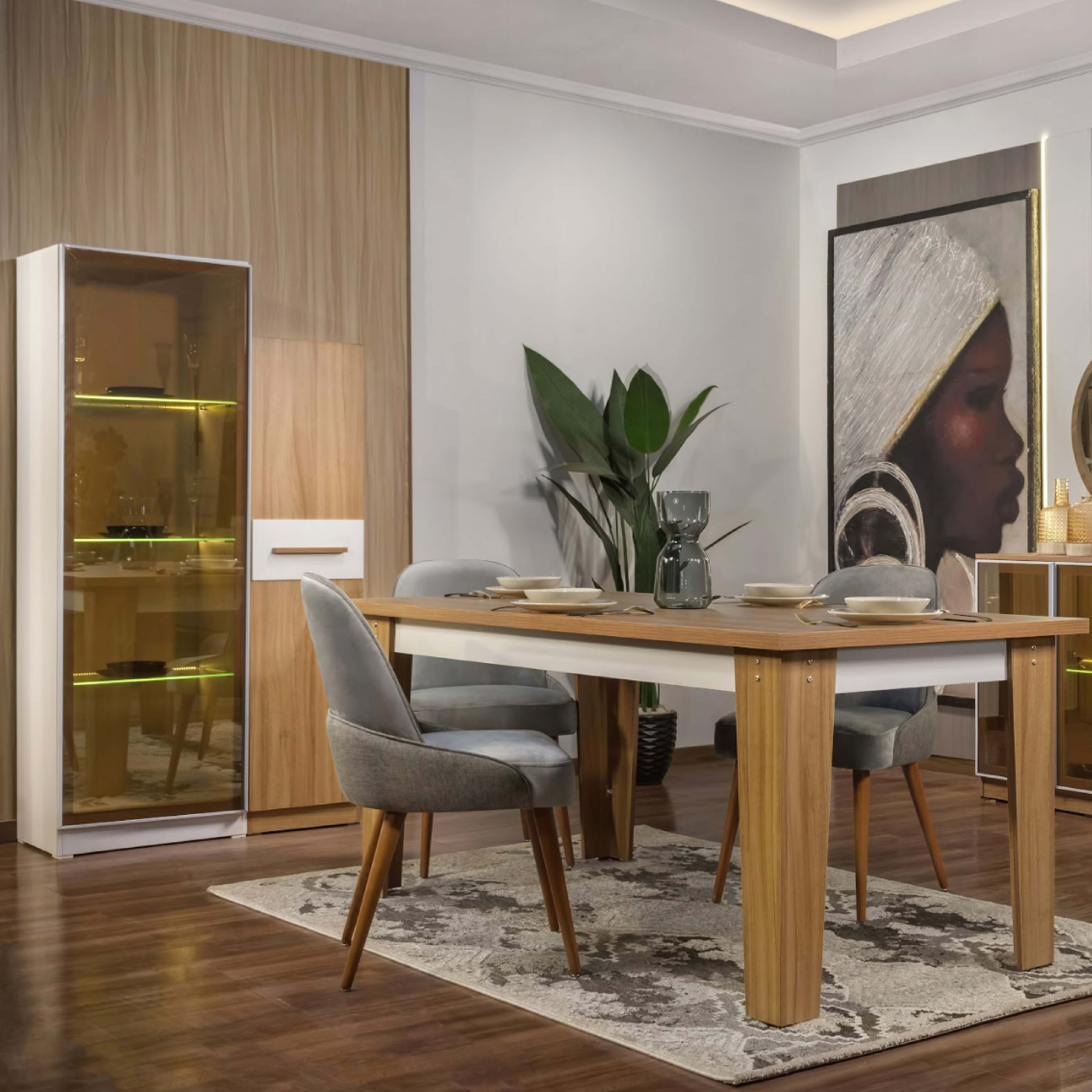 سفرة مكونة من ترابيزة + 6 كراسي + نيش + بوفيه مسطحات الغرفة خشب ام دي اف كراسي السفرة خشب زان احمر