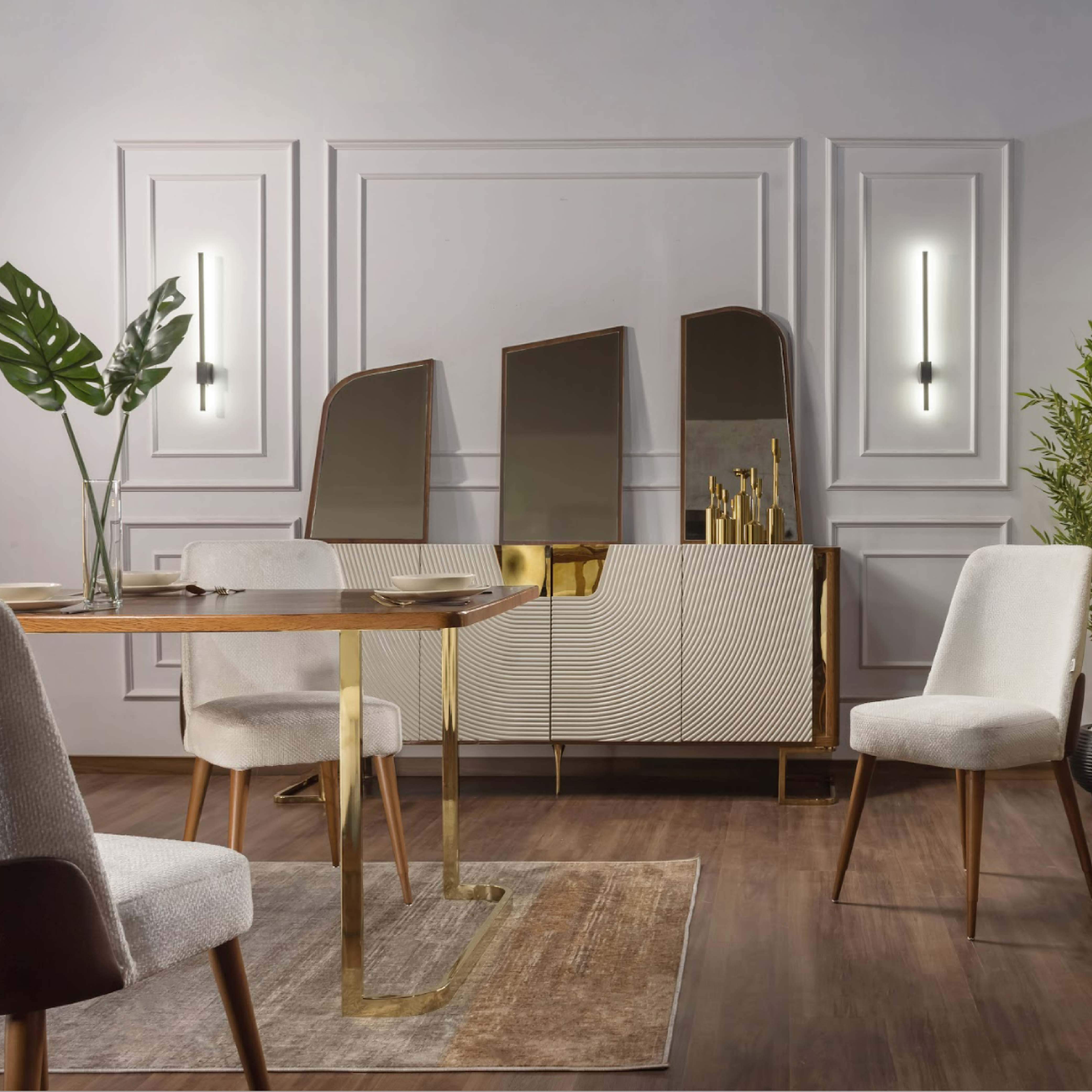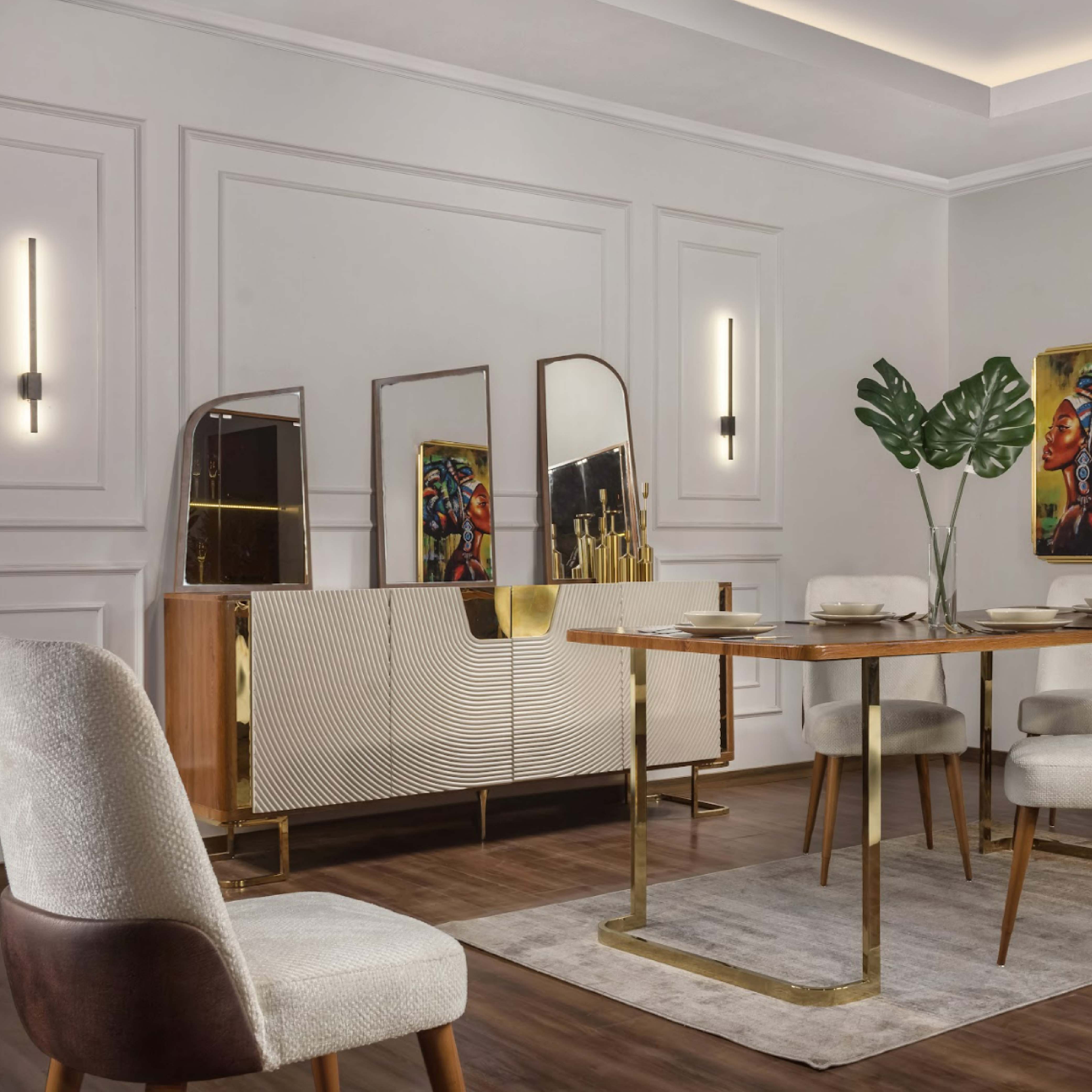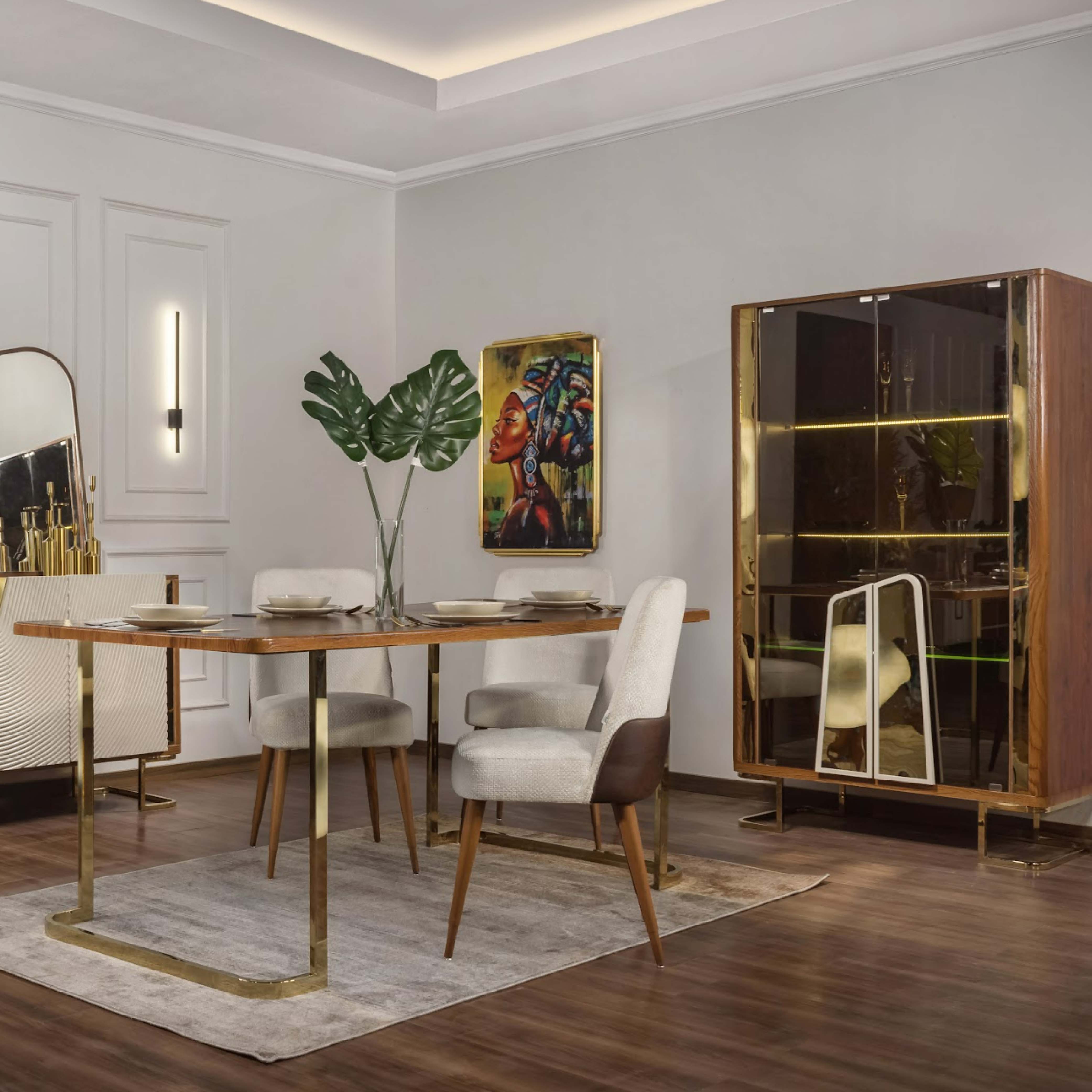 سفرة مكونة من ترابيزة + 6 كراسي + نيش + بوفيه مسطحات الغرفة خشب ام دي اف كراسي السفرة خشب زان احمر
