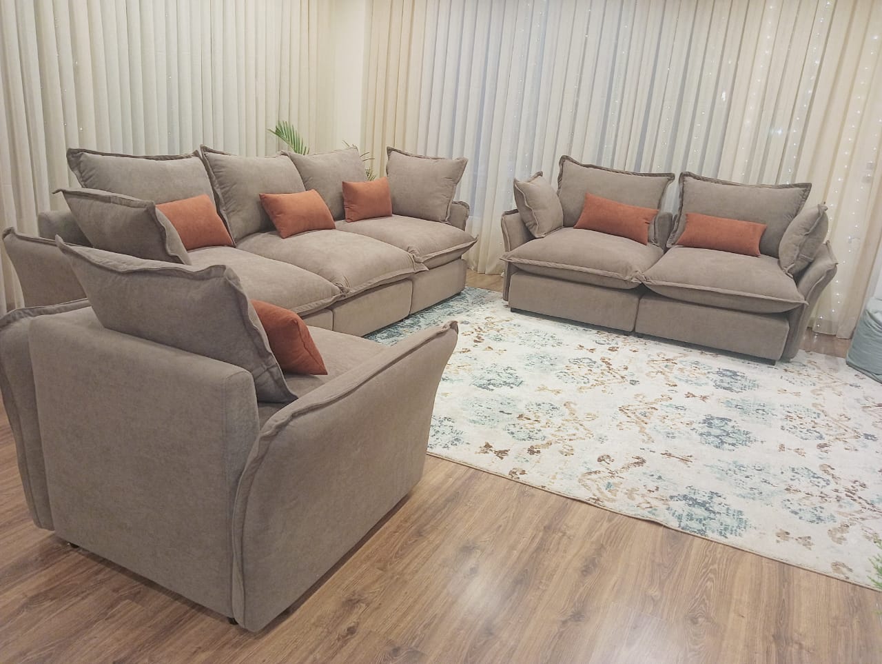 كنبة ٢ مقعد + كنبة ٣ مقعد + 1 فوتيه خشب زان احمر روماني ماكو فايبر كثافة ٣٥ سوبر سوفت