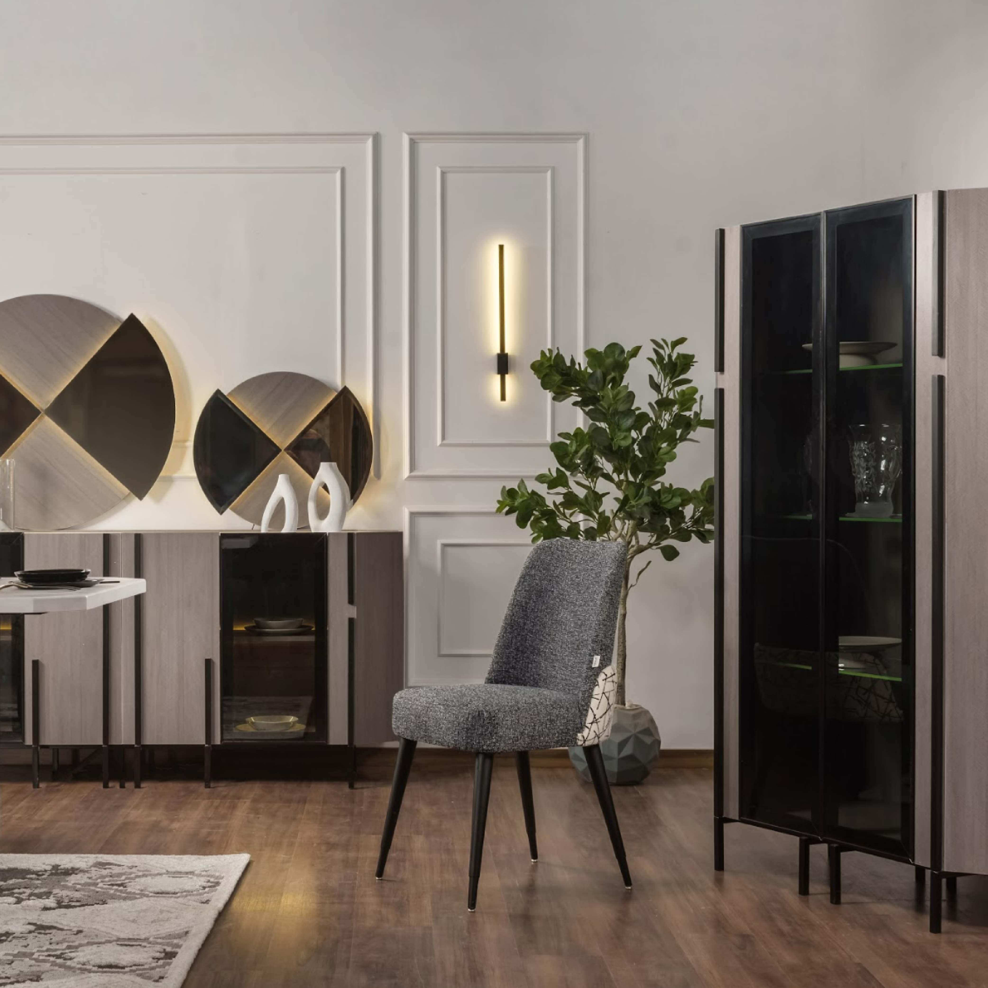 سفرة مكونة من ترابيزة + 6 كراسي + نيش + بوفيه مسطحات الغرفة خشب ام دي اف كراسي السفرة خشب زان احمر