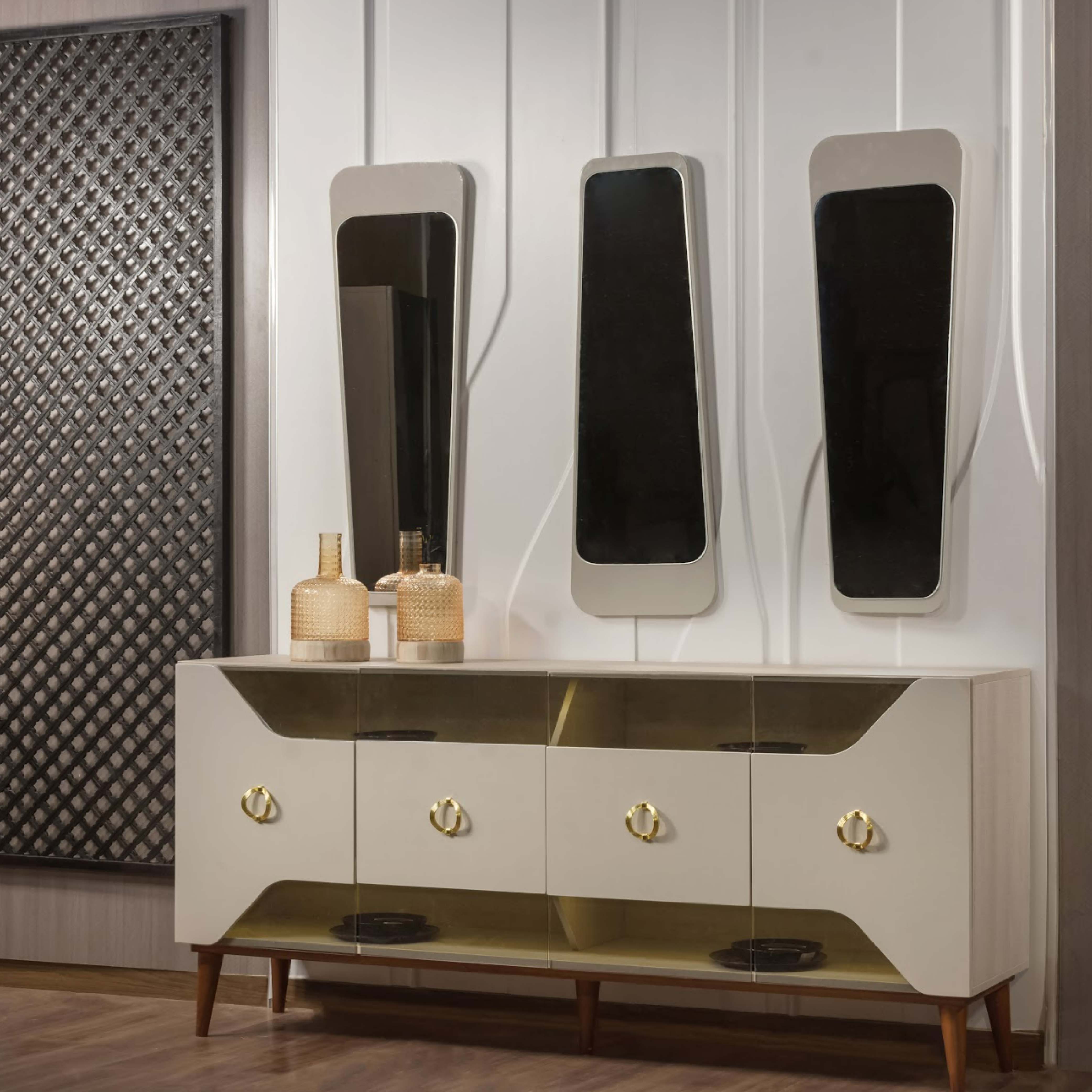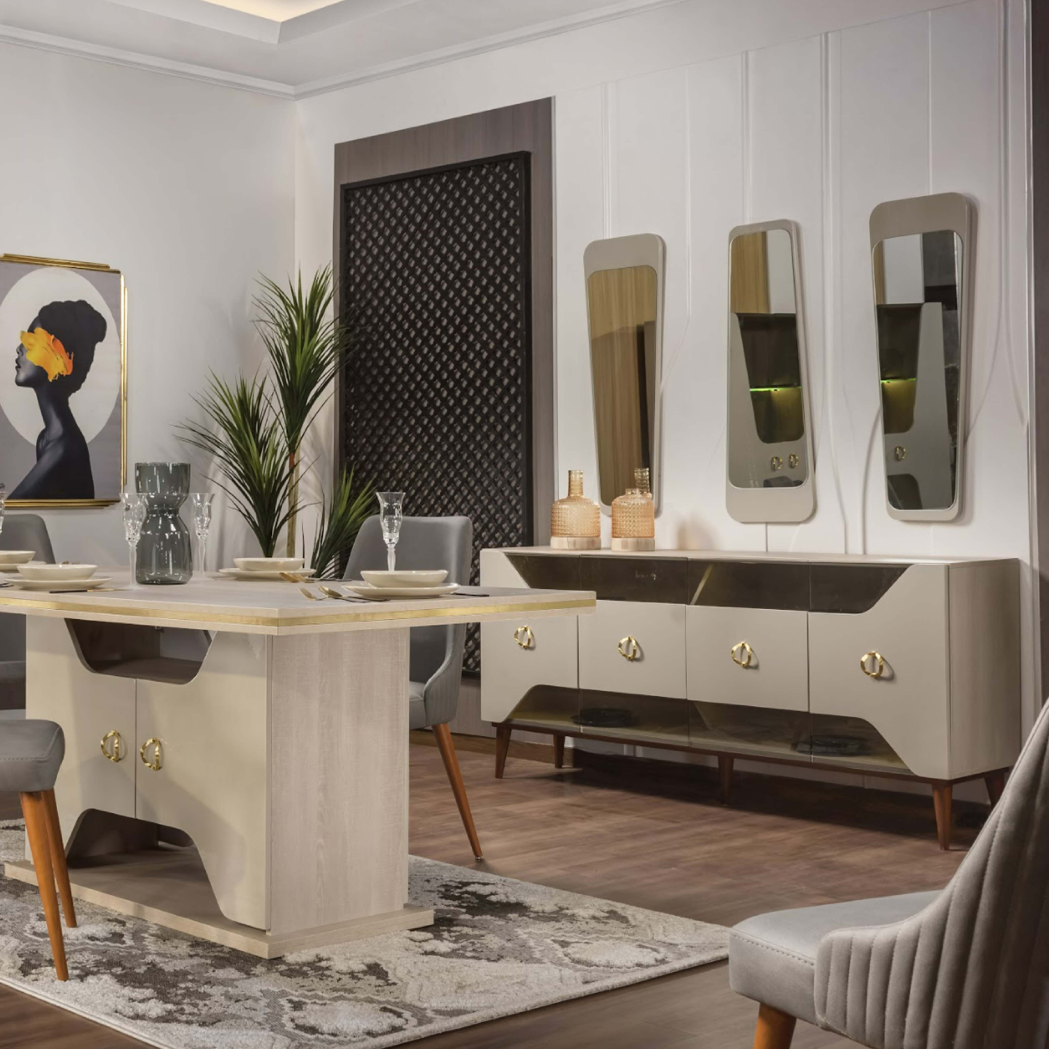 سفرة مكونة من ترابيزة + 6 كراسي + نيش + بوفيه مسطحات الغرفة خشب ام دي اف كراسي السفرة خشب زان احمر