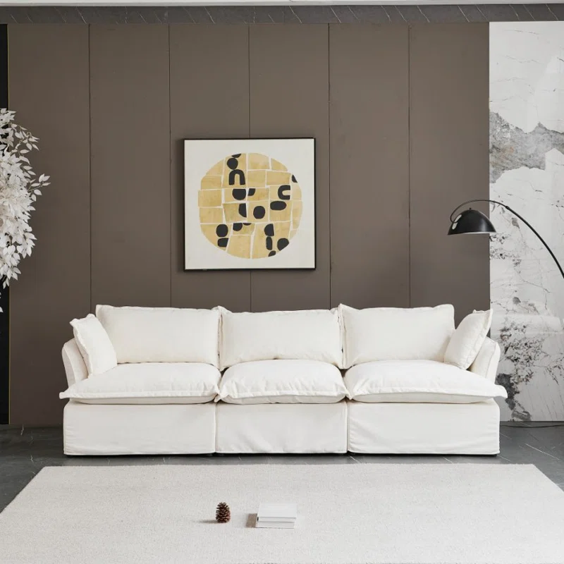 كنبة ٢ مقعد + كنبة ٣ مقعد + 1 فوتيه خشب زان احمر روماني ماكو فايبر كثافة ٣٥ سوبر سوفت Size : 240 – 200 – 110 Cm.